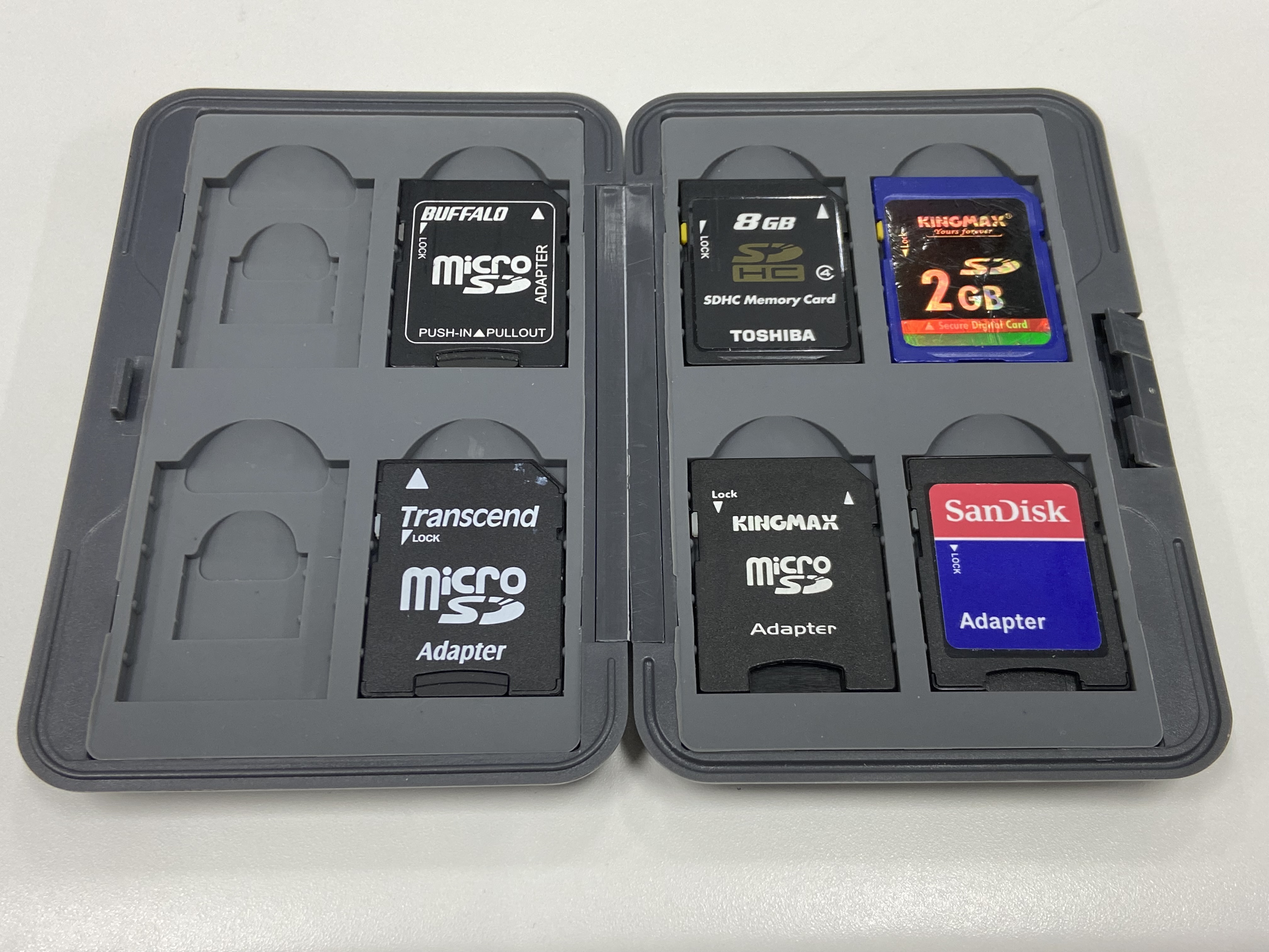こんな感じで、SDカードが8枚、マイクロSDカードが8枚入ります。