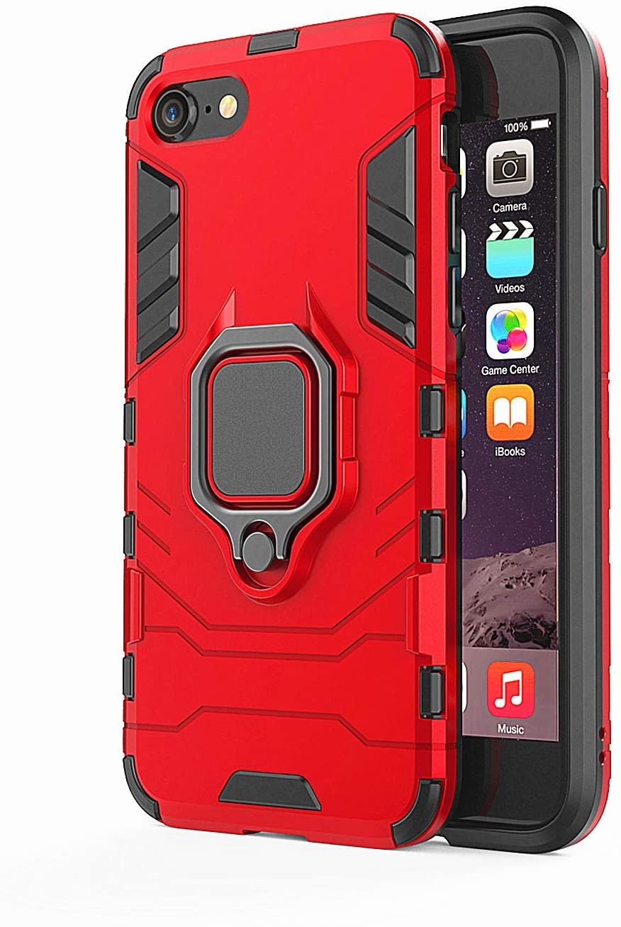 iPhone 8 ケース iPhone 7 ケース リング 耐衝撃 スタンド付き 背面カバー 二重構造 360度回転 マグネット式車載ホルダーに対応 スタンド機能 指リング ホルダー付き 薄型 頑丈 軽量 防指紋 全面保護 滑り止め アイフォン8/7 カバー 対応 (iPhone 8/7, 黒)