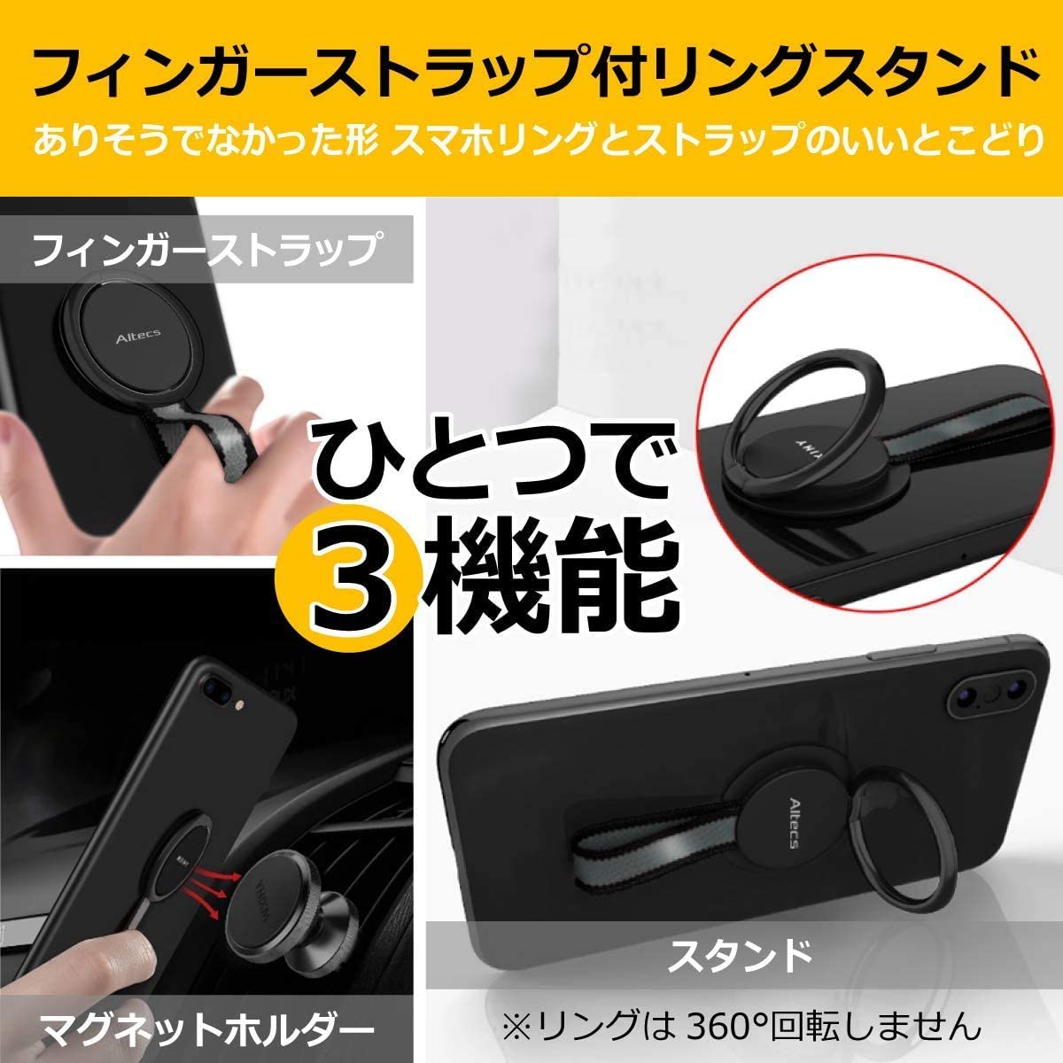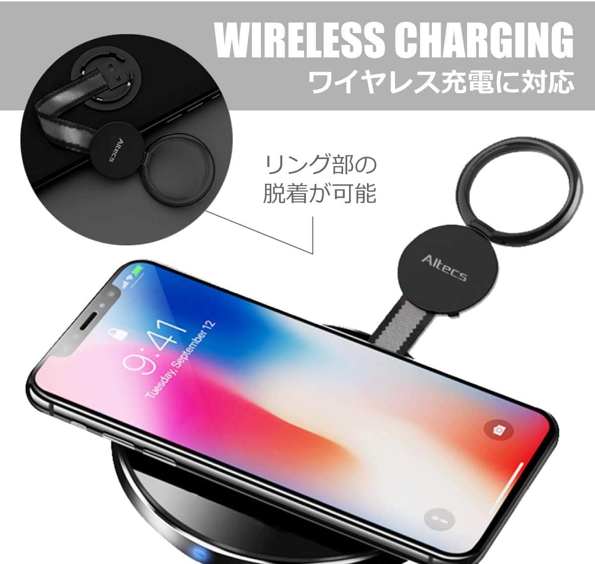 Altecs スマホリング フィンガー グリップ スタンド ワイヤレス充電対応 ホールドリング
