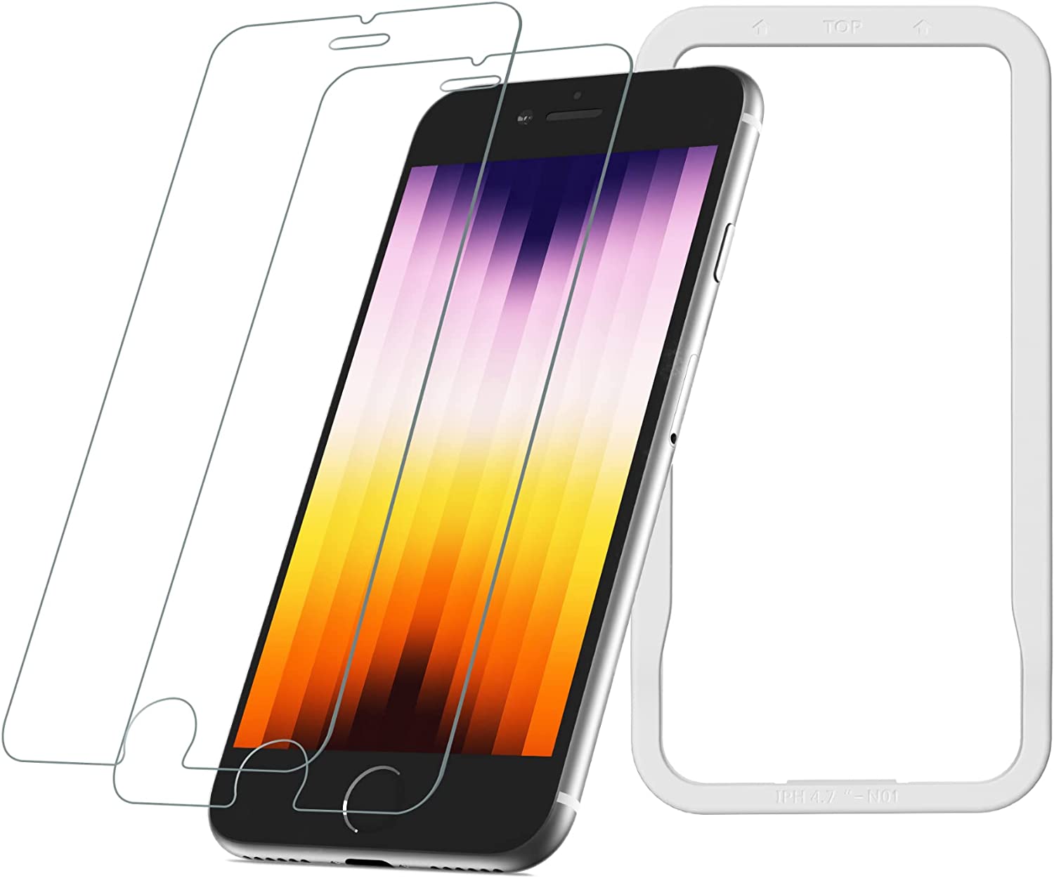 NIMASO ガラスフィルム iPhone SE 第3世代 iPhone SE2 8 7 適用 液晶 保護 フィルム ガイド枠 2枚セット