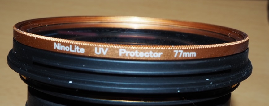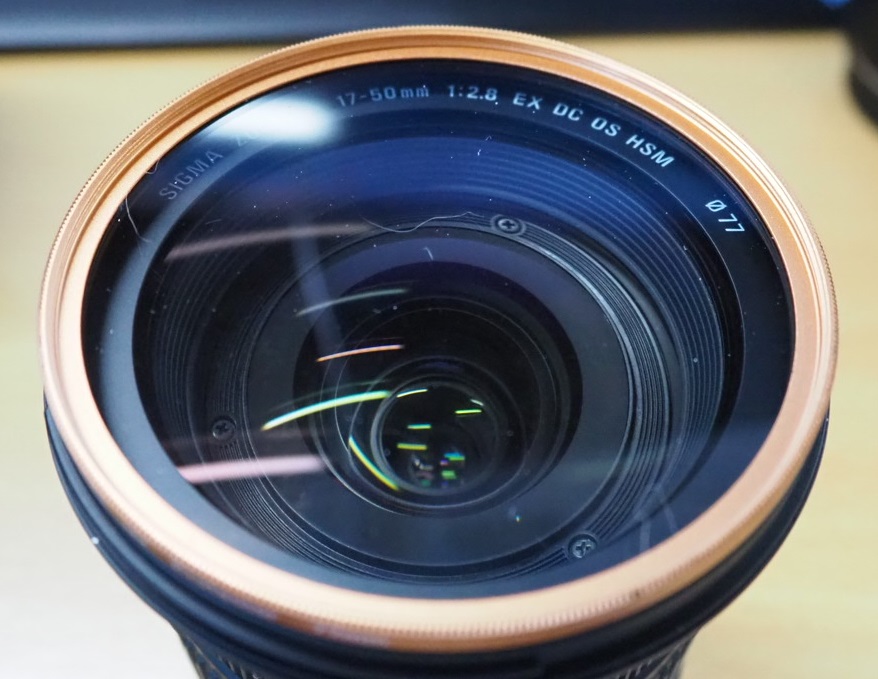SIGMA 17-50o F2.8 EX DC OS HSMに取付ている、ゴールド色のフィルターです。