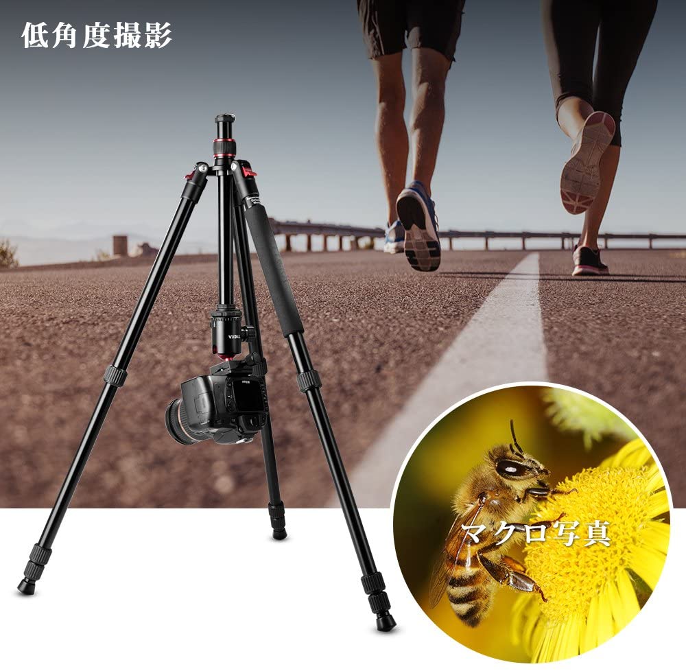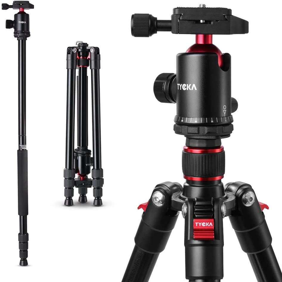 TYCKA カメラ三脚 一脚変化可 トラベル三脚 360度自由雲台 4段 最大耐荷重10kg 全高164cm アルミ製 コンパクト 安定 デジタルカメラ 一眼レフ ミラーレス一眼 等のカメラに対応 ブラック TK101 【メーカー直営店】