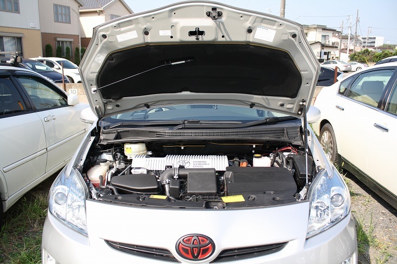 プリウス30系はアルミのボンネットなので、片持ちでも十分です。