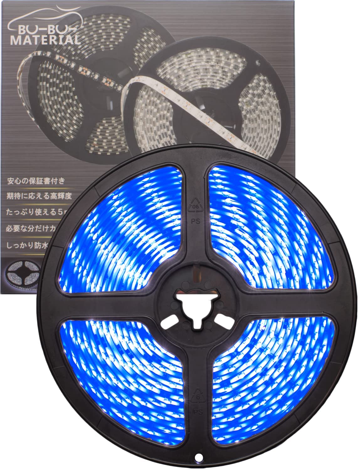 ぶーぶーマテリアル 色が綺麗なLEDテープ ブルー 青 300 LED 白ベース 5m 12V 防水