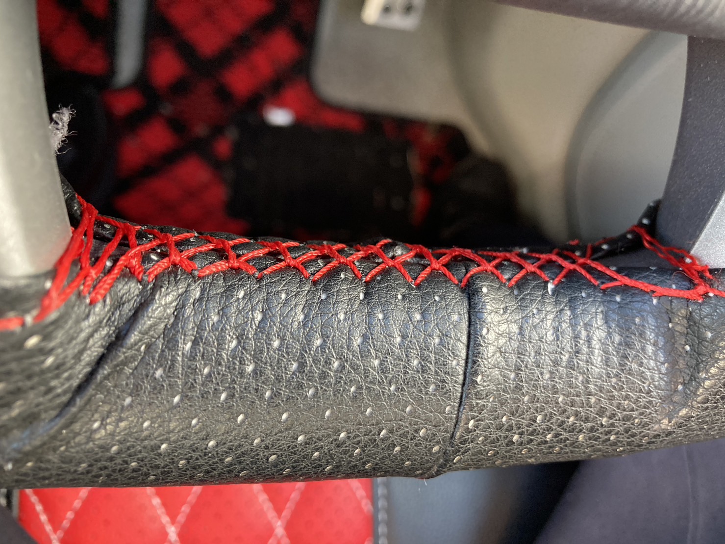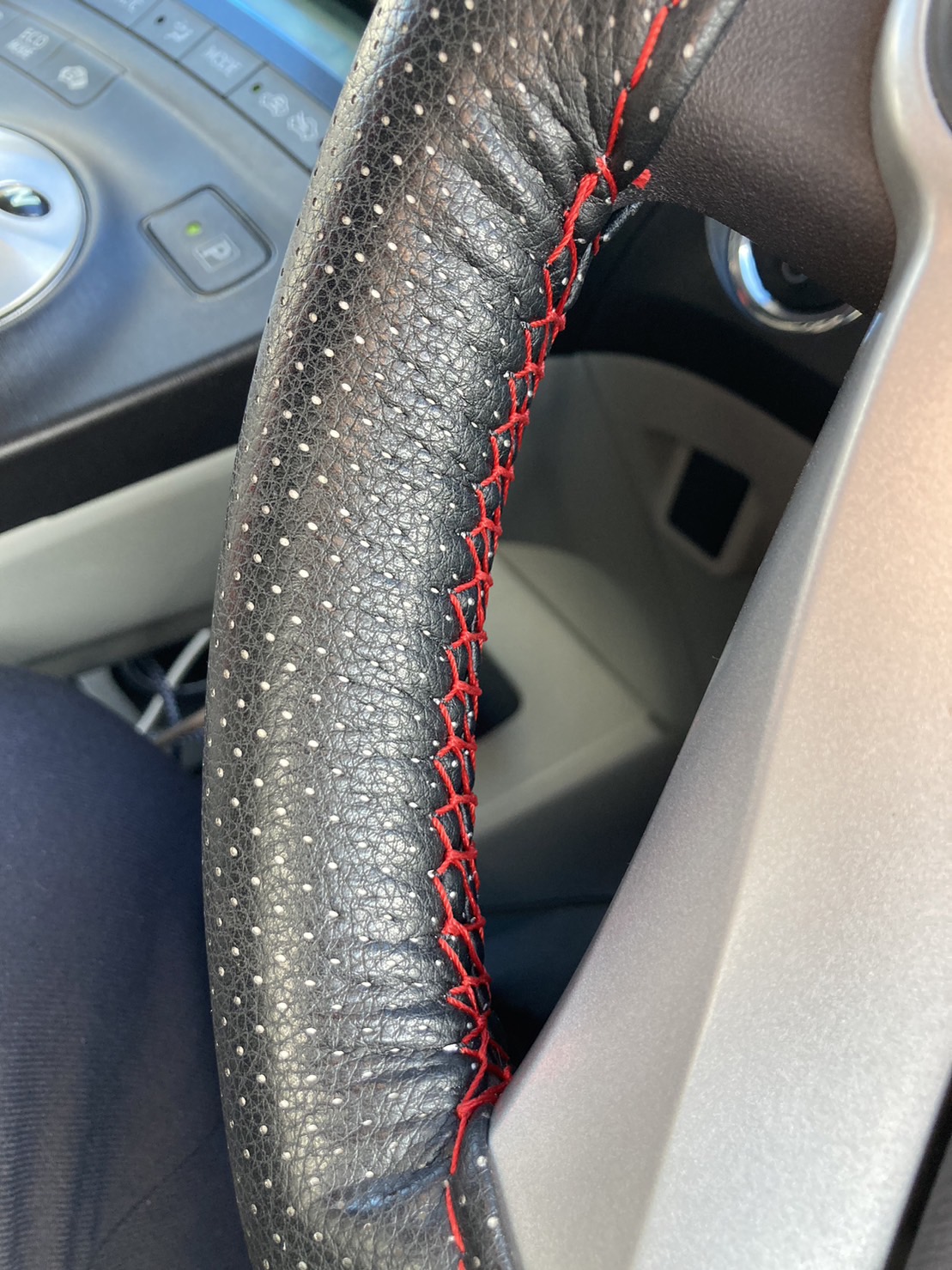 車ステアリングカバー 編むステアリングカバー 車ステアリングカバー 編むステアリングカバー ステアリング保護 軽自動車 滑り止め pu合成革 直径38cm DIY パンチレザー 針付き自分で縫うタイプのハンドルカバーです。モノはポリウレタン製です。これが自分の車に付けた感じです。縫った所はこんな感じ 上手く行かない部分もありましたが、何とか取り付けました。購入時期は2021年1月20日、価格は破格の\425でした。現在は在庫切れになっています。(2022年10月現在) 違うモノだとこんなタイプもあります。 戻る