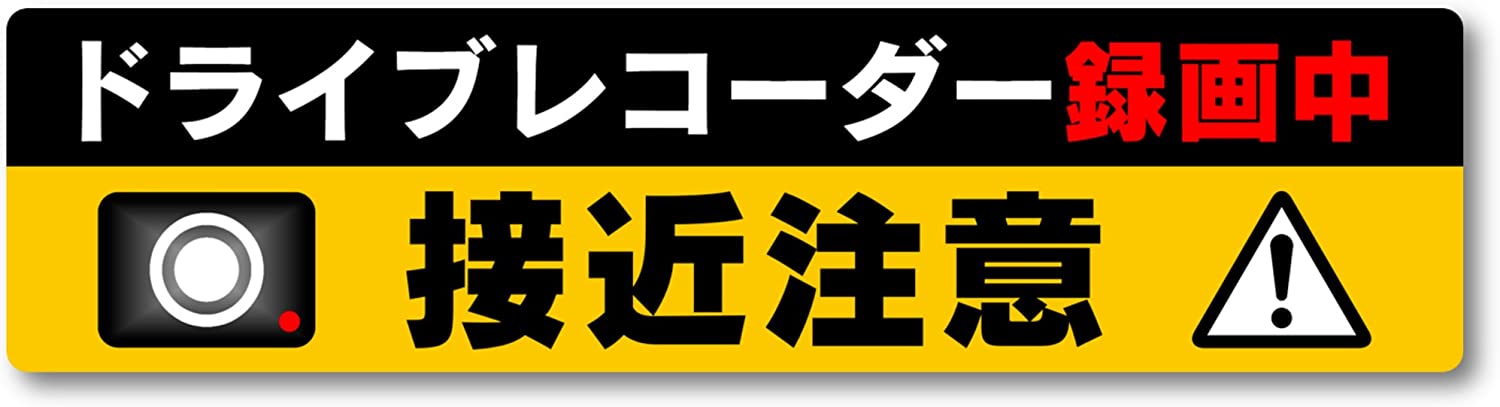 ドラレコ録画中 ステッカー シール ドライブレコーダー録画中 接近注意 (黒×黄, 20×5cm M)